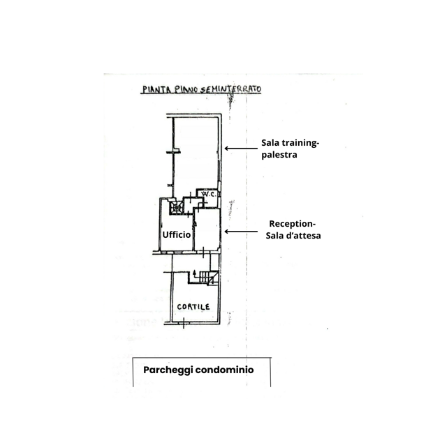 Attualmente così suddivisa: Reception e sala d’attesa, ufficio, sala training/palestra, Wc.